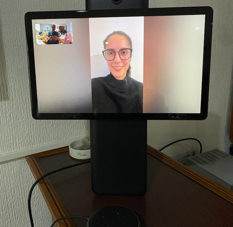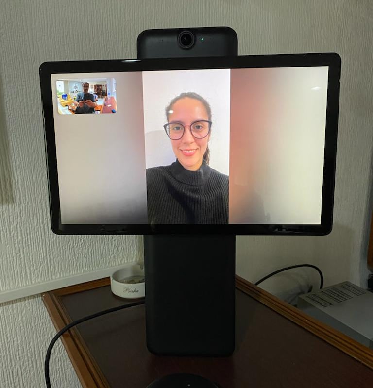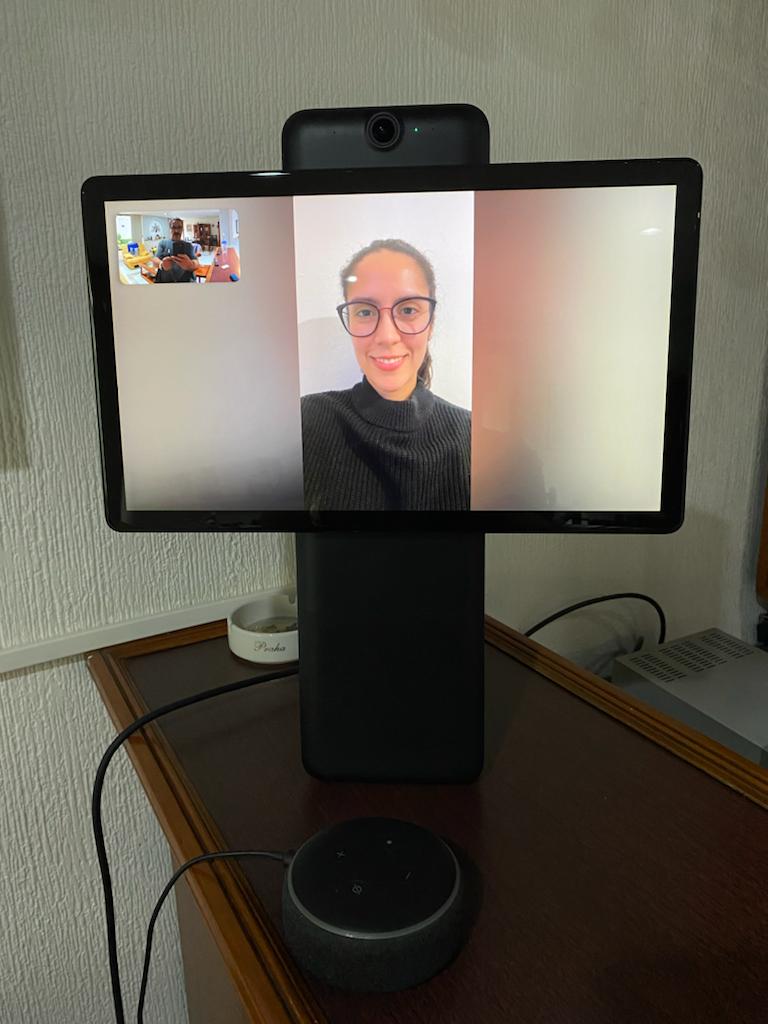 This device is supposed to reduce background noise and improve the caller's voice during video calls, but when I use the Portal with my family and everyone is sitting together and having a normal group interaction I cannot understand, hear well, or participate as if I was there because they don’t hear me or it’s just not easy to engage in a group conversation when you can’t use eye gaze or body language for turn-taking. In my opinion, the next step in the development of these technologies is to find a way to facilitate turn-taking because if I don't feel I can participate naturally in the conversation it is really hard to have the sensation of being present.