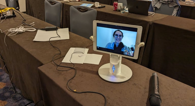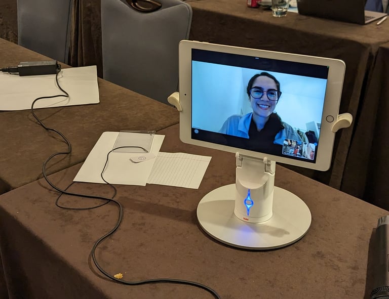 How was my experience presenting with the mobile telepresence robot (I used one called Double 3) at the conference? It did not work as expected. I had the Zoom call open and shared my screen with the PowerPoint file, and the link with the platform to operate the robot. It was hard to coordinate the operation of both platforms and focus on the presentation itself. The mix of Zoom + the robot was not good. When connecting through the robot I did not feel fully present. I also tried the Kubi, which, compared to the Portal, allows you to move the screen so you can “turn your head” sideways. My conclusion: we need an intelligent integration of technologies that allows us to focus on what we are saying and seeing and not on the operation of the devices.